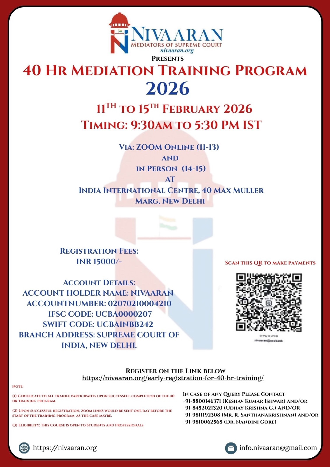 Rooted in the principles of generative dialogue, mutual trust and respect, and a shared commitment to harmony, Nivaaran leads the way in integrating mediation into the evolving global justice landscape for a more peaceful and just world.